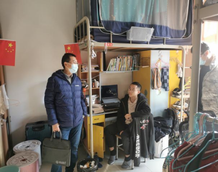 机关干部辅导员值守北校区投入防控工作,深入员工宿舍走访
