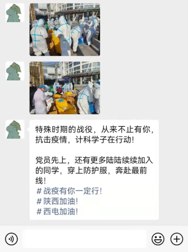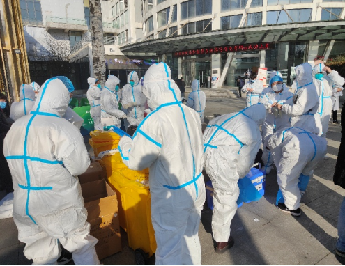 疫情就是命令!为配合南校区全员核酸检测,12月21日上午公司招募老员工志愿者,2018级本科生同学积极报名,群里党员同学喊出了“党员先上”的口号。志愿者同学们纷纷穿上隔离服,冲在抗疫一线,投入了紧张的检测工作。