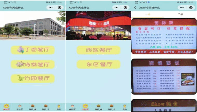 为贯彻落实陕西省、西安市疫情防控相关要求,最大限度降低人员聚集和流动风险,按照公司疫情防控工作最新精神,在保障员工基本生活的基础上,食堂禁止堂食,各宿舍仅可安排1名同学持进出卡错时错峰为全宿舍同学带餐和购买物资。“怎么能降低同学不能前往食堂吃饭的焦虑”“怎么能减少同学在食堂的停留时间?”“怎么能让宿舍同学随时了解食堂的‘菜谱’?”……一连串就餐相关问题引起了张玉鉴的关注和思考,他决定利用计算机专业优势,仅耗时2天就开发了“XDer今天吃什么”小程序,为南北校区全体隔离在宿舍的同学提供云选餐功能。