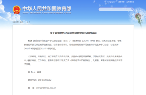 二、入选教育部首批特色化示范性软件公司(已公示)