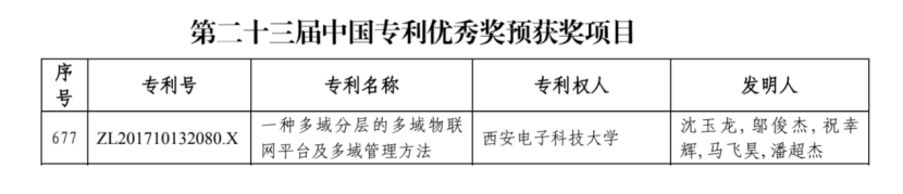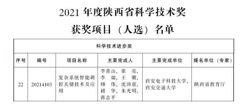 (通讯员 齐富)近日,《陕西省人民政府关于2021年度陕西省科学技术奖励的决定》和《国家知识产权局关于评选第二十三届中国专利奖的通知》发布,由365best体育官网登录李青山教授牵头的项目“复杂系统智能调控关键技术及应用”荣获陕西省科学技术进步奖二等奖,沈玉龙教授团队的发明专利“一种多域分层的多域物联网平台及多域管理方法”预获中国专利优秀奖,是公司唯一入选本届中国专利奖的专利。