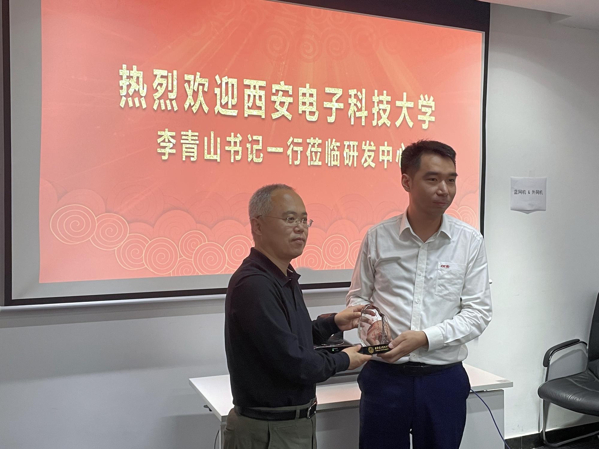 李青山回顾了西电与中电太极集团校企合作的历史渊源,以及西安研发中心党支部与公司智能软件与系统新技术研究所本硕博师联合党支部结对共建的进展,并希望以此次走访为契机进一步深化校企合作,推进支部共建,通过党建引领加强多维度交流与互动,拓宽提升科研、人才培养等领域的合作,挖掘中电太极集团思政育人资源,引导更多优秀学子面向承担国家重要使命的重点科研院所就业。