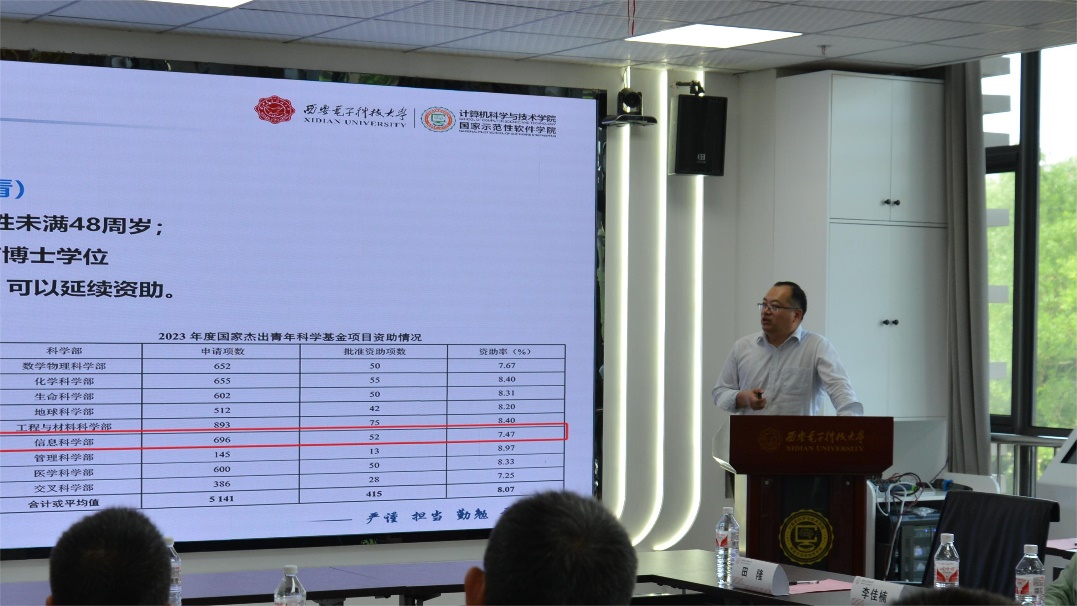 国家级青年人才马小科教授作了题为“青年教师独立科研与人才申报体会”报告,他从个人成长经历讲述了人才申报的心路历程,分享了在团队管理和人才申报的经验。他谈到,科研要长期坚持,找对思路和方法,对内苦练内功,对外加强交流,寄语青年教师“贵在坚持、永不放弃、等待机会、相信自己”。