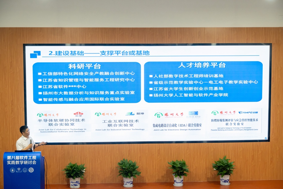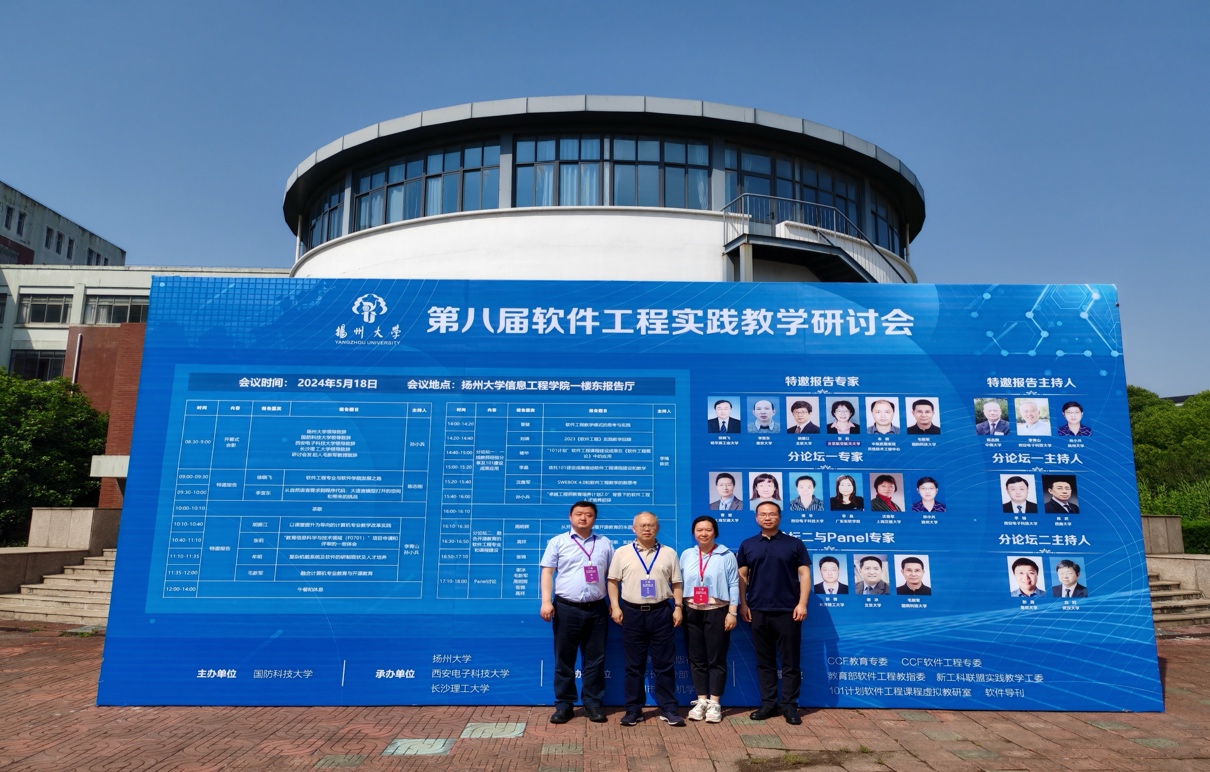 在软件定义一切和大模型时代,特色化示范性软件公司建设、软件工程专业建设、课程教学和人才培养面临着新的机遇和挑战,为了更好的促进软件工程公司产品方法和实践教学成果的交流和分享,推动软件工程专业建设和教学改革,提升软件人才的培养质量。2024年5月18日,由国防科技大学主办,扬州大学、365亚洲体育网入口和长沙理工大学联合承办的第八届软件工程实践教学研讨会在扬州大学信息工程公司(人工智能公司)东报告厅举行。CCF计算机教育专委会副主任、国防科技大学毛新军教授,扬州大学信息工程公司(人工智能公司)经理孙小兵教授,365亚洲体育网入口计算机科学与技术公司党委书记、软件工程学科负责人李青山教授担任会议联合主席。