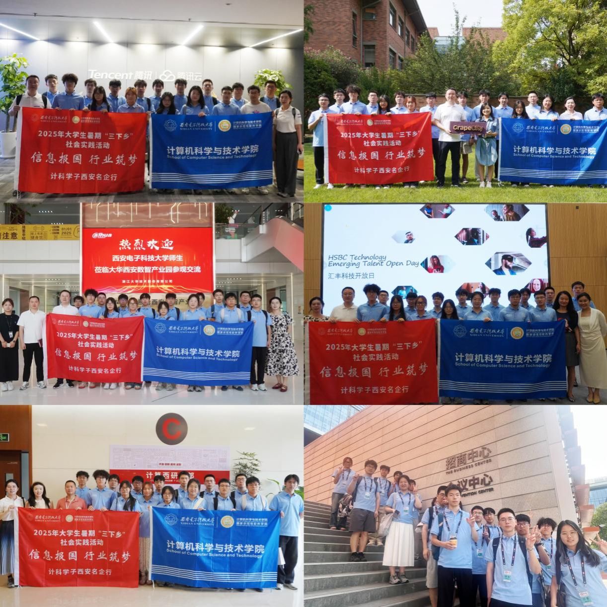 7 月 15 日至 17 日,在前期精心策划和组织下,本次“信息报国、行业筑梦”计科学子西安名企行暑期社会实践活动共招募16名实践队员,由辅导员袁权、章燕玲老师领队,前往腾讯云智研发公司、西安葡萄城信息技术有限公司、大华股份西安数智产业园、汇丰软件西安分公司、华为西安研究所等五家公司重点就业单位开展实践活动,了解探究行业前沿动态,调研人才培养的产业需求,明确信息强国战略下人才应具备的政治素养、知识架构、能力素质,探寻人才培养的创新方向和路径。