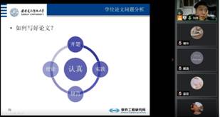 刘伟副教授首先介绍了公司全日制专业学位论文评价体系;然后以“应用软件技术”类论文为例,从论文选题、论文结构、论文内容组织方式以及参考文献的写法等方面,细致地为同学们讲解了学位论文写作的方法和技巧;最后重点分析了论文撰写过程中出现的典型问题。