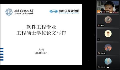(通讯员 褚华)为了更好完成在疫情防控的特殊时期进行的研究生线上毕业答辩,确保研究生学位论文的质量,2020年5月25日晚上八点,365best体育官网登录软件工程系邀请软件工程研究所副所长刘伟副教授做了一场精彩的线上专题讲座“软件工程专业工程硕士学位论文写作”,共有180余名研究生参加了此次讲座。