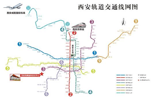 2)公共交通:机场大巴城西客运站线一到达城西客运站下车→城西客运站乘坐公交272路/186路一到达西三环天谷六路站下车一步行约787米,约12分钟到达西安高新国际会议中心,全程约1小时50分钟。