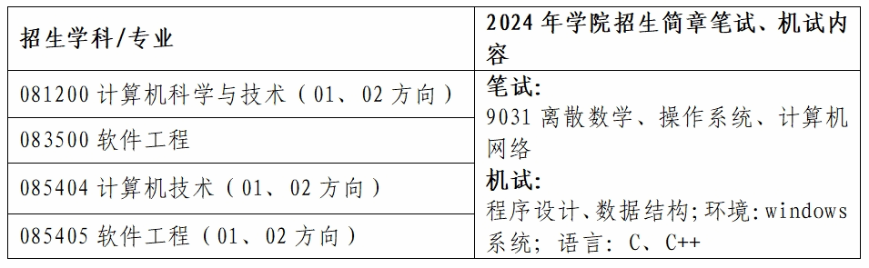 专业知识考核范围为2024年公司招生简章上复试笔试和机试相关内容: