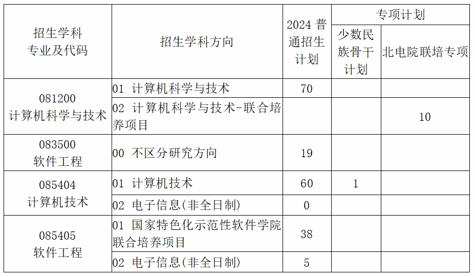 公司2024年全日制硕士研究生招生计划指标共378个,非全日制硕士研究生招生计划指标共5个,统考生招生计划如下表: