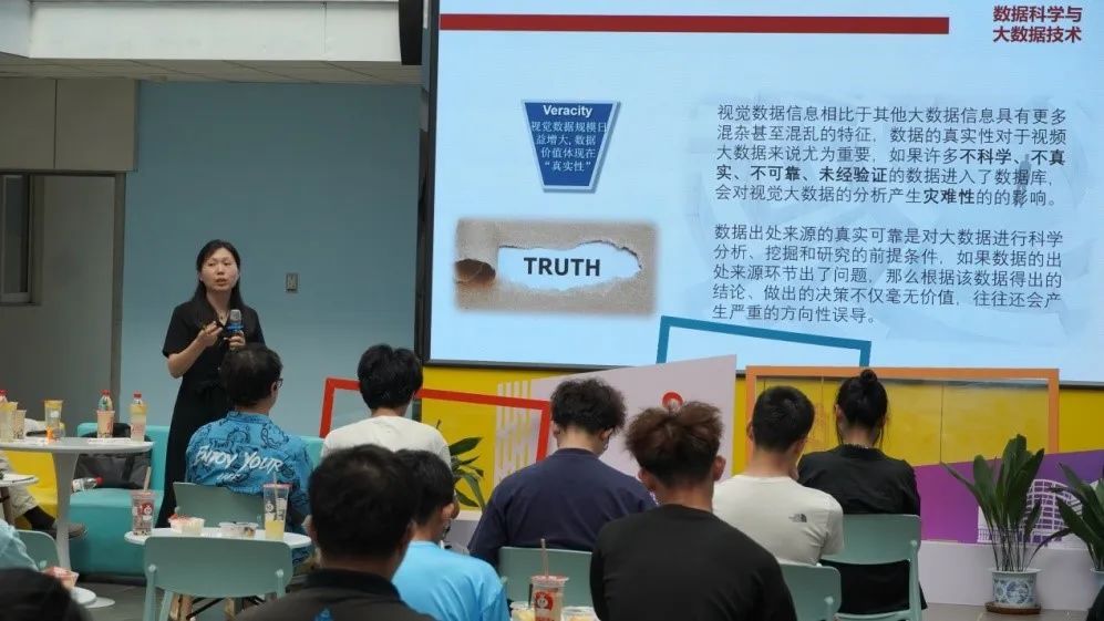 谢琨副教授为同学们分别介绍了数据科学以及大数据技术的基本内容,说明了365best体育官网登录数据科学与大数据专业的教学目标。她以视觉大数据为例,让同学们生动地认识到了生活中每日产生的海量数据,使同学们更直观的了解了大数据技术的应用场景。她指出公司致力于培养“数据科学家”与“数据分析师”,希望感兴趣的同学们积极参与学习实践,努力成为未来国家所需要的稀缺人才。
