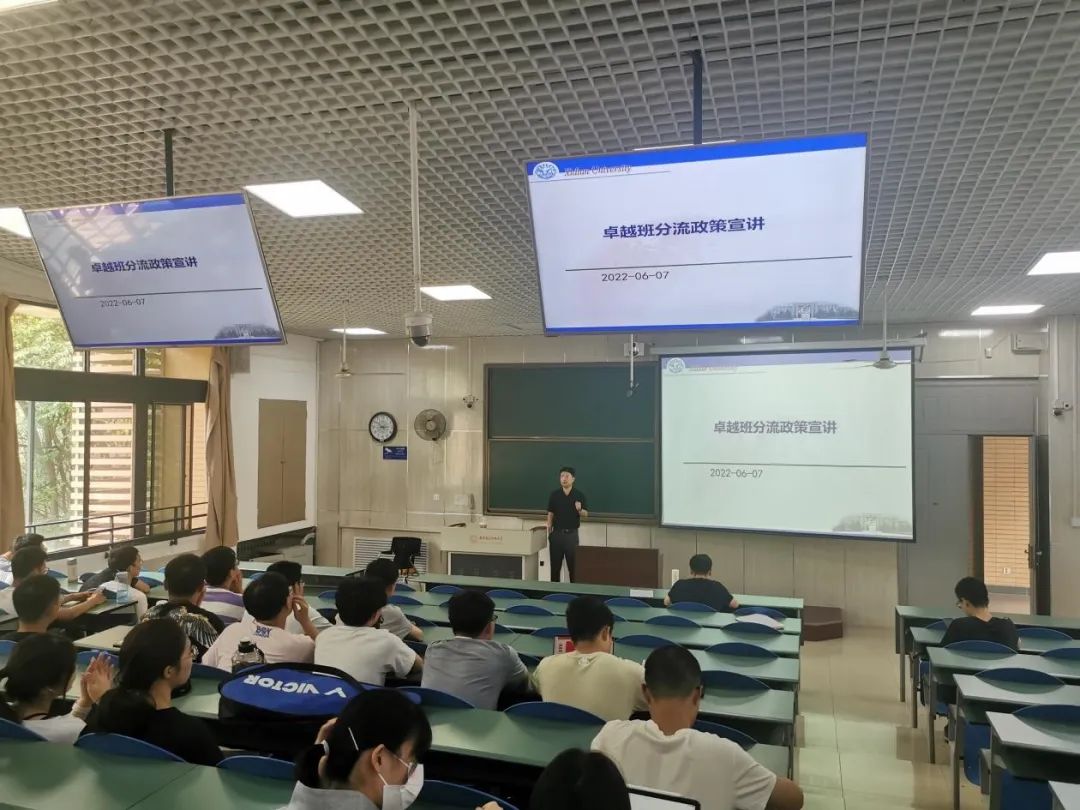 据悉,365best体育官网登录高度重视本科生公司产品工作,于6月7日下午还在B楼303教室同时开展了2019、2020级卓越班专业分流政策宣讲,深入落实“六卓越一拔尖”计划2.0精神,加强公司产品的过程管理。卓越班负责教师杨鹏飞面向现行卓越班的新形势与新情况,针对保研政策、分流政策等同学们所关注的问题进行全方位解读,及时帮助员工了解学业和调整学习计划,保证卓越工程师人才培养工作的顺利进行。365best体育官网登录落实立德树人根本任务,坚持不断优化卓越班培养模式,致力于以更优质的教育资源让同学受益,促进在良性的竞争中互助成长。