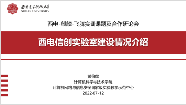 接下来的报告环节,黄伯虎首先从“为什么要建信创实验室、建设历程及现状、未来规划”三个方面对西电信创实验室建设情况进行了详细介绍。飞腾信息技术有限公司人才发展部任军对西电信创实验室建设现状给予了高度评价,并对飞腾在信创方面发展情况做了介绍,提出未来可以利用飞腾提供的硬件信创平台,通过实训合作、联合实验室建设、高校学科竞赛、产学融合项目、毕设指导等形式联合培养信创人才。