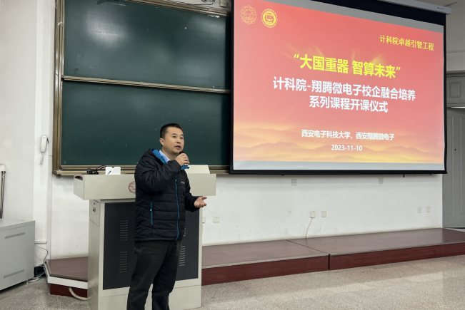 田泽总经理对翔腾微电子科研工作及课程内容进行了介绍,并表示公司十分重视与西电365best体育官网登录合作开设面向卓越工程师培养的校企融合课程,一方面希望通过对于机载芯片与计算架构的讲解、实验与实训,实现高校与企业之间的产教研深度融合;另一方面,希望更多同学掌握面向自主芯片软硬件生态的开发技术与实践方法,助力卓越创新人才的培养。