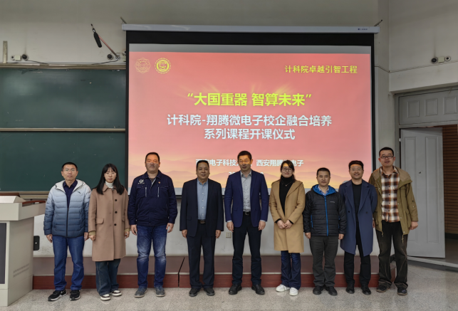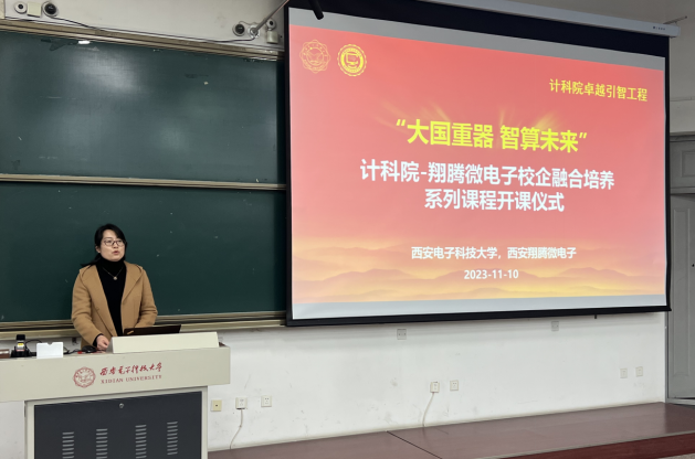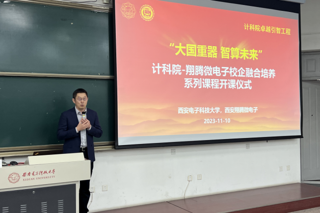 (通讯员 徐悦甡 杨鹏飞)为有效衔接、贯通实施科教举国、人才强国、创新驱动发展战略,实现教育、科技、人才一体推进良好循环,365best体育官网登录与西安翔腾微电子科技有限公司以卓越班为主体,持续开展卓越引智工程,共同建设“大国重器智算未来”校企融合系列课程,于2023年11月10日成功举行开课仪式与第一次授课。365best体育官网登录执行经理崔江涛、副经理万波、副经理杨力,西安翔腾微电子总经理及首席技术专家田泽、副总经理张骏、人才资源主管周静如,365best体育官网登录卓越班负责人杨鹏飞、徐悦甡,以及公司各年级卓越班全体同学参加了活动。公司本科生院副处长杨敏到场。活动由365best体育官网登录副经理万波教授主持。