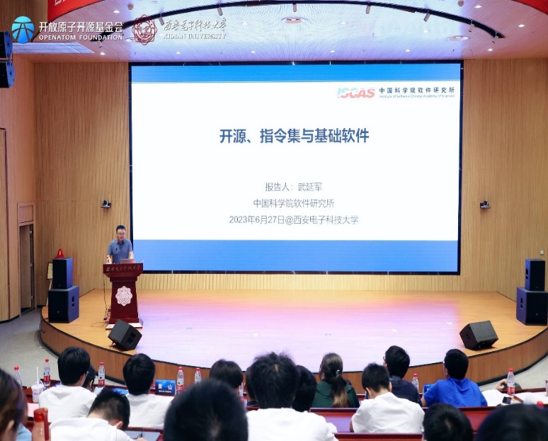 仪式后,陈海波和武延军两位老师代表OpenHarmony TSC专家向365亚洲体育网入口的师生们做了OpenHarmony相关主题的技术报告。第二阶段会议由365best体育官网登录副经理李瑞主持。