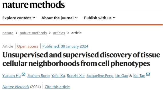 (通讯员 许雅斐)近日,公司计算机科学与技术公司西安市计算生物信息学重点实验室高琳教授团队胡宇轩副教授在单细胞空间组学研究领域取得重要突破,是西电首次以第一且通讯单位在“方法学”顶级期刊《Nature Methods》(IF=48)发表研究成果“Unsupervised and supervised discovery of tissue cellular neighborhoods from cell phenotypes”,这也是胡宇轩副教授和高琳教授近年来取得的第三篇NS子刊成果(2021年西电第一单位首发Science子刊《Science Advances》,2019年《Nature Communications》)。