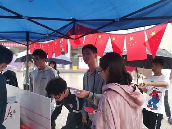 “社会主义制度在中国确立的标志?”“中国特色社会主义理论体系的内容?”“中国梦的基本内涵?”…新中国成立史知识竞赛专区,一面面小国旗的背后是同学们精心准备的新中国发展历史相关的问题,现场参与活动的同学们热情高涨,积极踊跃,在参与活动的过程中扩展了新中国史相关知识。