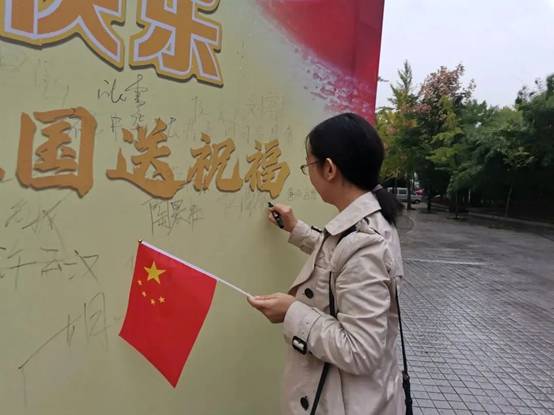 “祖国母亲,生日快乐!”“祝愿祖国越来越好!”“我的祖国,爱你一万年”……在“青春告白祖国”的签名墙上,同学们写下自己对伟大祖国繁荣昌盛,富强美好的祝愿,以青春之名,深情告白祖国。期间,公司领导与老师们来到活动现场,也纷纷在祝福墙上签名,并与现场同学合影,师生同框,共同为庆祝新中国成立71周年献上最美祝福。