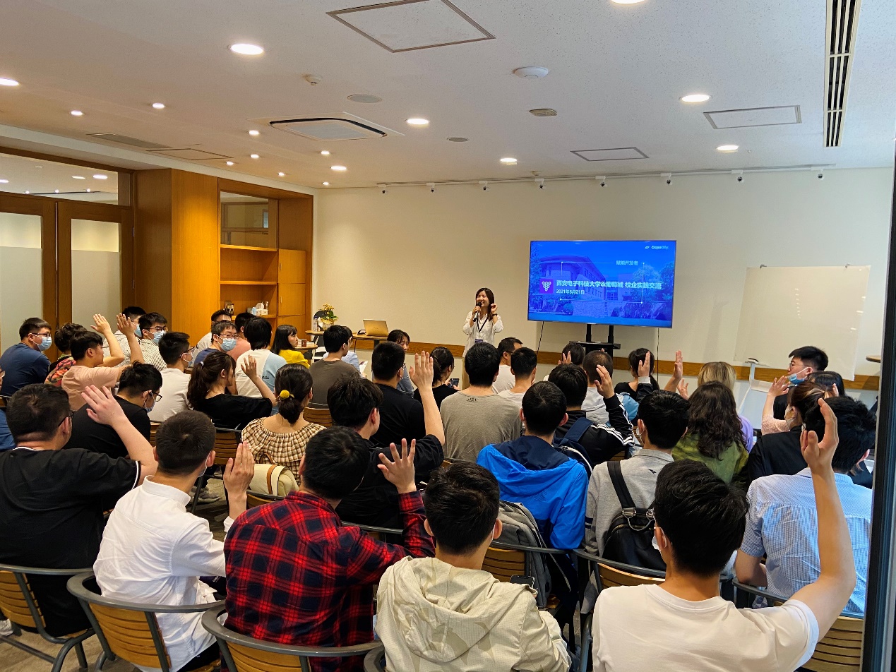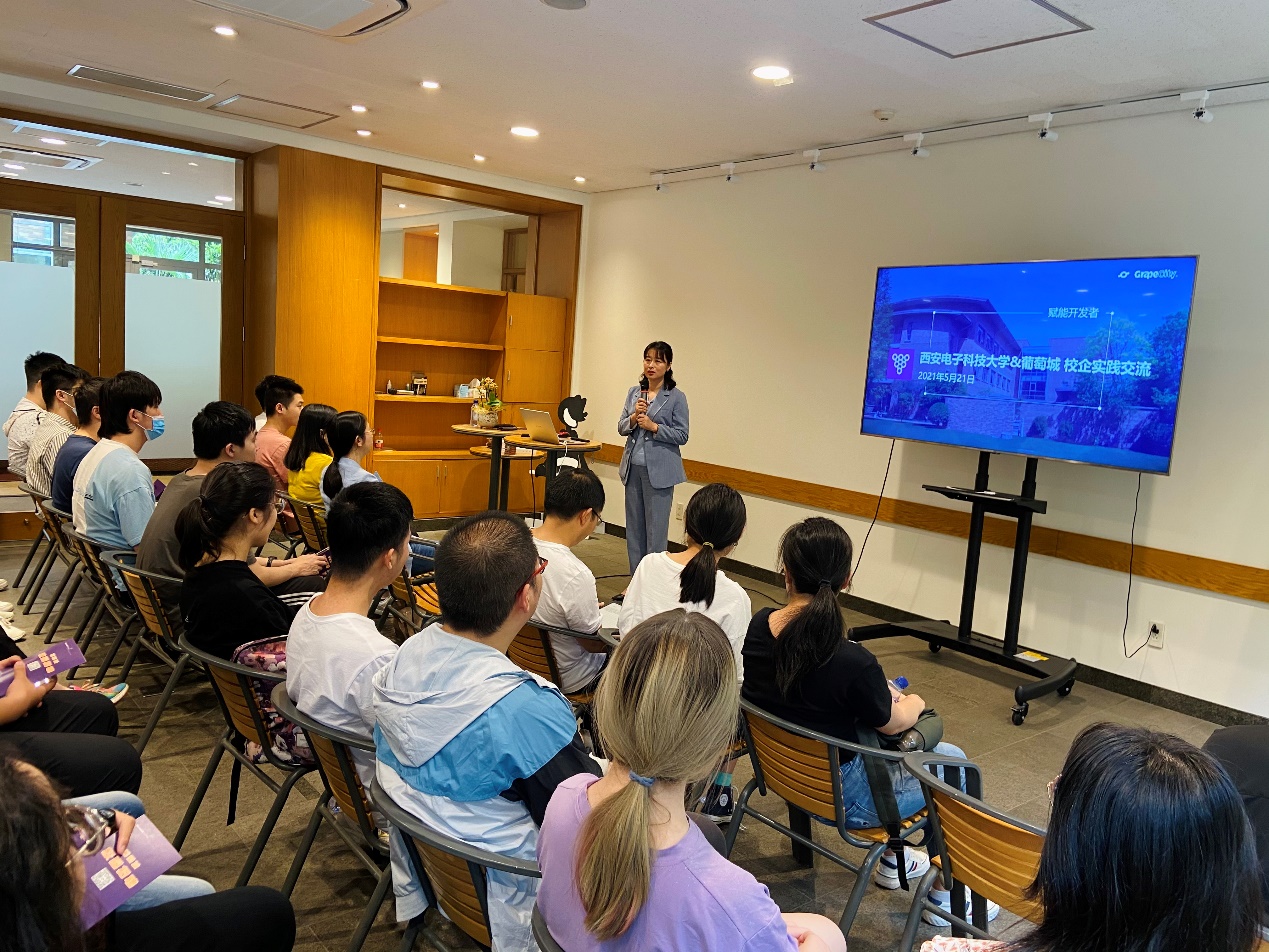 随后,同学们和在公司任职的西电师兄、师姐们就公司业务、个人发展和求职机遇等个人关心的问题进行了充分交流。在讲解和互动结束之后,工作人员带领同学们参观了葡萄城园区,近距离感受工作气氛和企业文化。