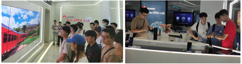 到达华为西研所园区,云核心网产品线CS&IMS产品部的老师带领同学们游览园区,并讲解园区建筑构成以及文化蕴涵。在OpenLab实验室,讲解员为同学们介绍了华为整体情况,依次介绍陈列在实验室的设备,并为同学们演示全场景相关的技术产品。同学们细心倾听,现场体验,感受全场景解决方案的魅力,激起了同学们对先进技术的浓厚兴趣。