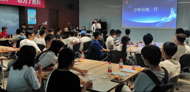 华为云核心网产品线CS&IMS产品部与同学们进行了面对面交流活动。云核心网SVC开发部负责人以部门为切口,从一个具体部门的介绍带领同学们了解华为,感受华为文化。