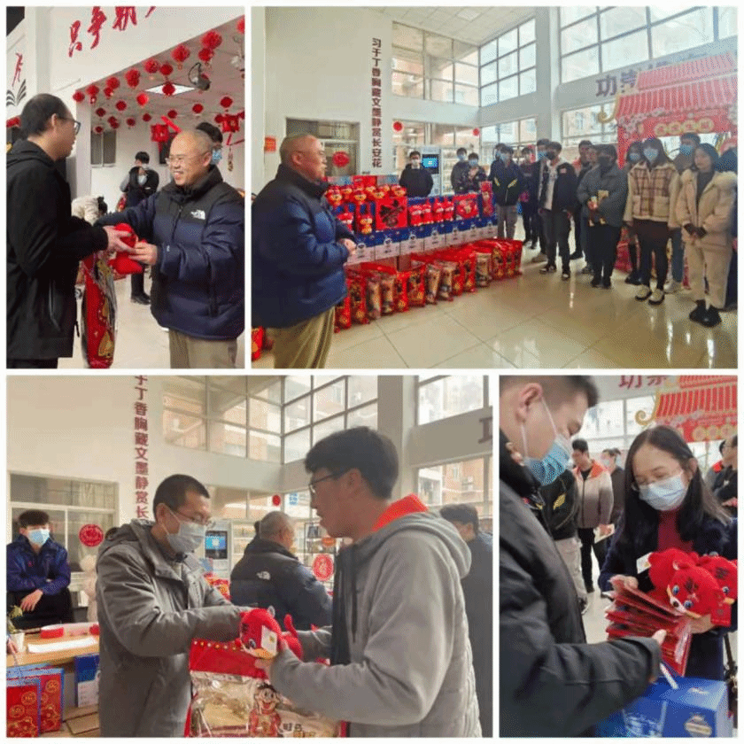 临近除夕,为了让留校的同学们过好年,公司为同学们准备了满满的惊喜,送来新春的祝福。在南校区丁香11号楼大厅,公司党委书记李青山、副书记张莹莹、副经理万波,来到公司迎新春活动现场,和一线学工干部一起为同学们发放了新春大礼包,竹园1号书院副书记吴微参加了慰问活动。李青山代表公司班子为同学们送上新春的祝福。他谈到,因为疫情、学业等原因,今年部分同学留校过年,为了让同学们能过好这个年,公司努力做好各种保障,用心开展丰富的活动。希望同学们积极参与,祝愿大家在公司度过一个开心难忘的新年。同学们纷纷表示感谢,也对各位老师表达新年的祝福。