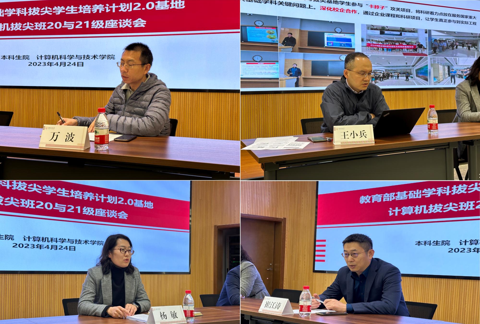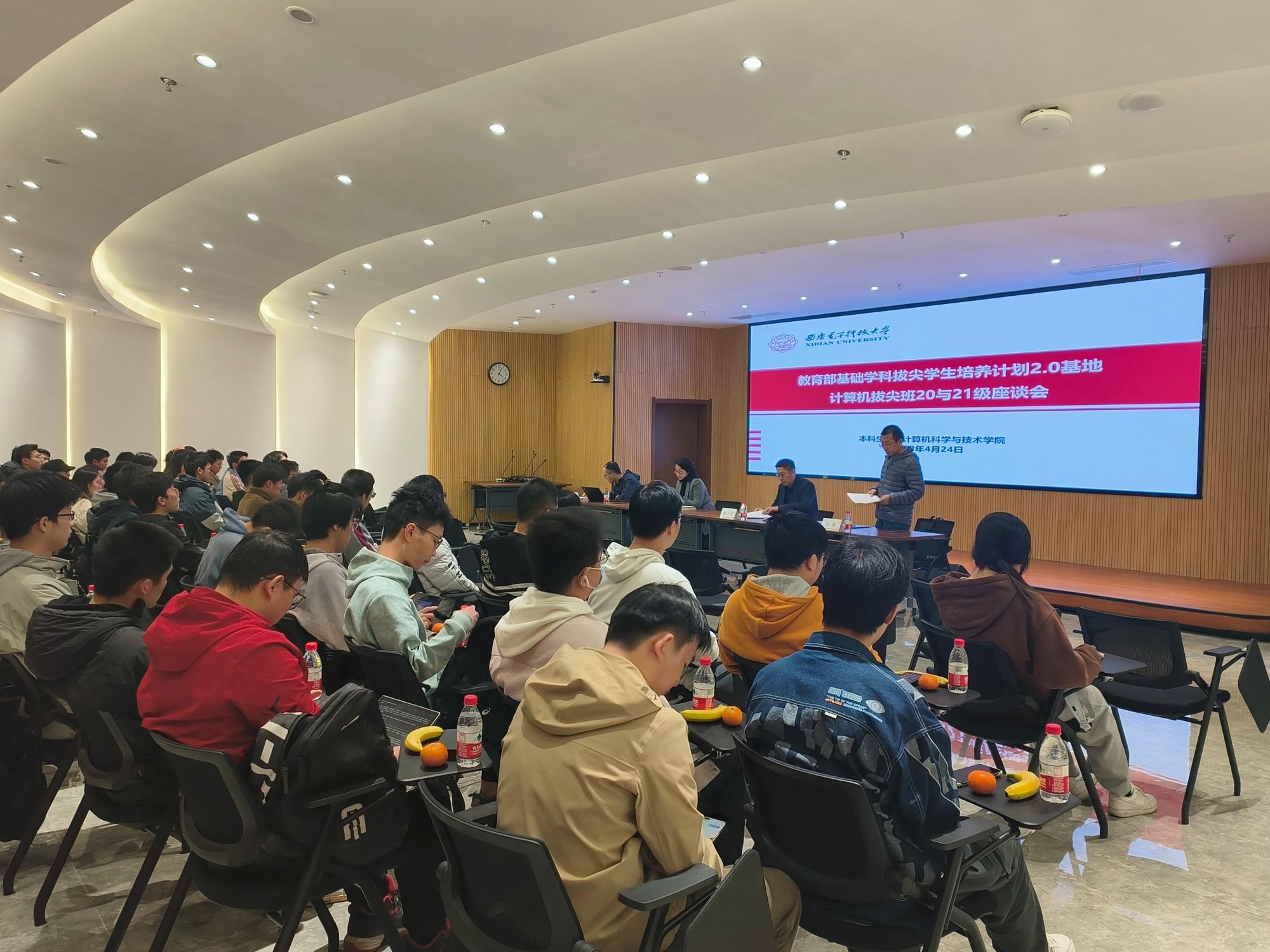 (通讯员 王小兵)为贯彻落实“全面提高人才自主培养质量,着力造就拔尖创新人才”二十大精神,根据公司第十三次党代会拔尖创新人才培养工作部署,4月24日下午4点,计算机拔尖班2020级与2021级员工座谈会在南校区网安大楼会议中心103报告厅召开。本科生院副处长杨敏,365best体育官网登录执行经理崔江涛,副经理万波,计算机拔尖班负责人王小兵参加。本次座谈会由365best体育官网登录与本科生院共同举办,旨在深入调研拔尖班特性需求,全面落实立德树人根本任务,推进公司拔尖创新人才培养工作,提高人才自主培养质量,打造“不设天花板”的拔尖人才培养空间。