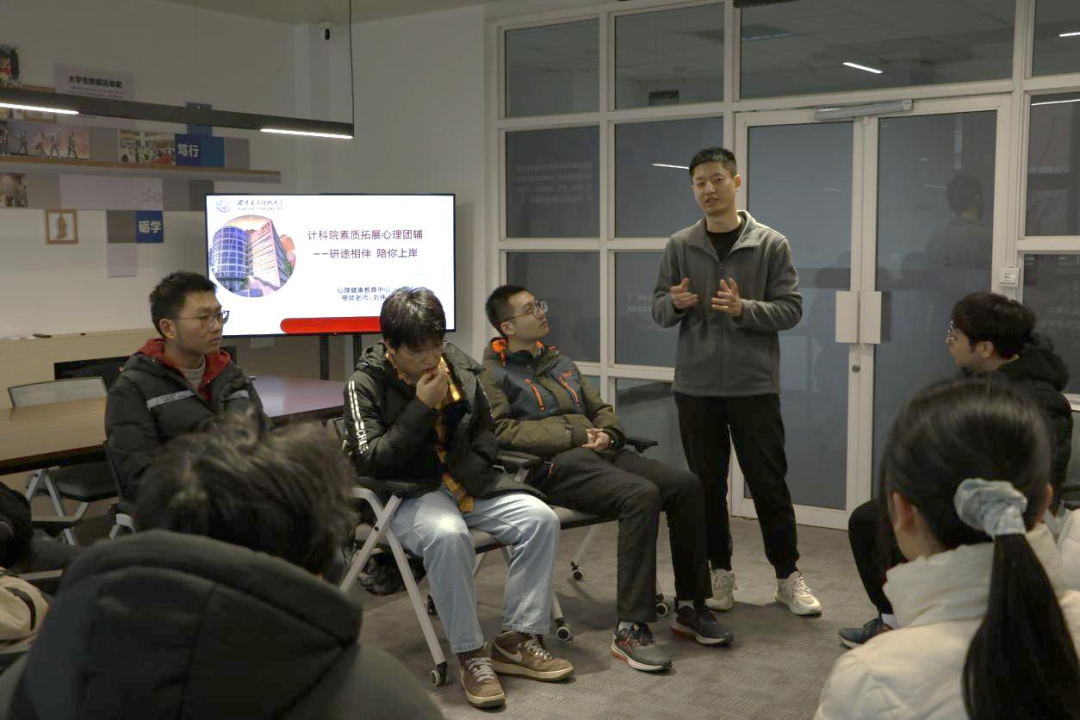 为帮助考研学子坚定备考信心,缓解备考压力,公司联合心理健康教育中心在12月13日组织开展“研途相伴,集体团辅缓压力”活动。心理健康教育中心刘伟老师受邀主持活动,部分考研同学主动报名参加。活动开始前,2023级硕士研究生李卓贤、孙彧斌分享了考研路上的宝贵经验。团体辅导从情绪卡牌、解手链、祝福卡片等破冰游戏开始,在相互熟悉后,刘伟老师鼓励同学们分享近期备考过程中的情绪和心态的改变。随着现场气氛的逐渐活跃,同学们开始畅所欲言,勇敢表达自我感受,在疏解自身压力的同时也为身边的同学加油助力。