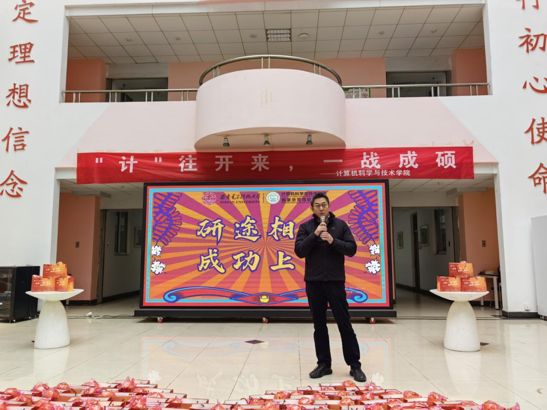12月13日的竹园1号公寓大厅,365best体育官网登录执行经理崔江涛和党委副书记黄成龙亲自到场,向正在积极备考的学子们表达慰问。崔江涛鼓励同学们在即将到来的考试中,要善用系统思维将书本读“薄”,及时查漏补缺巩固要点,同时要以饱满的热情和坚定的决心迎接挑战,书写属于自己的辉煌篇章。随后,院领导与毕业班辅导员一起为同学们发放“加油包”,近500份礼包围成的一颗关爱之心,让考研学子们倍感温暖。