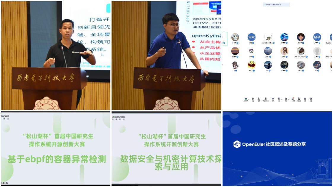 董金光、李卓珩、朱云成分别介绍了OpenHarmony赛题、OpenKylin赛题、OpenEuler赛题,程书意围绕《基于eBPF的容器异常检测》进行了赛题技术解析,麻付强以《数据安全与机密计算技术探索与应用》为题进行了分享。他们就赛题解析、开发实践等相关方面给同学们进行了介绍,鼓励员工积极参赛,以开源的形式,凝聚更多开发者和生态合作伙伴的力量,为基础软件研发不断注入“人才活水”。