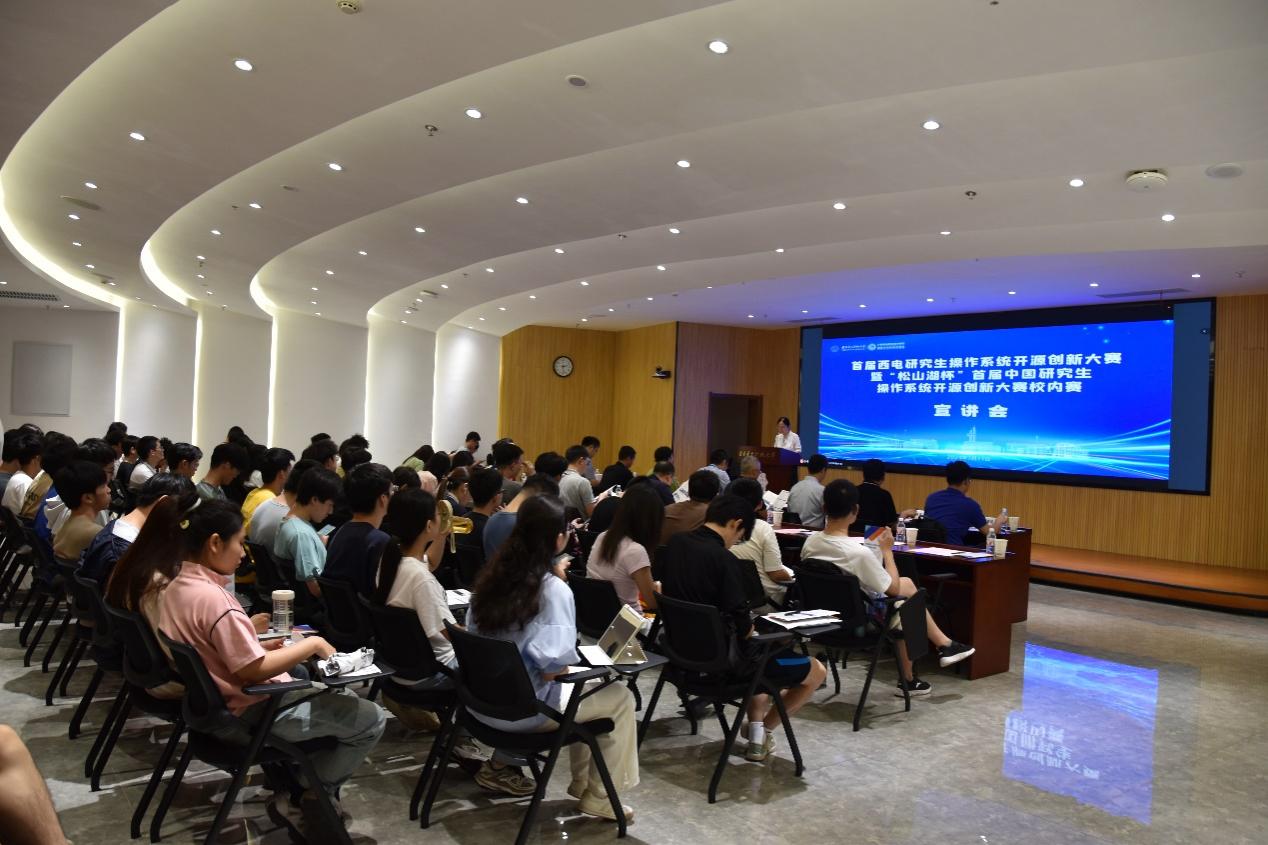 (通讯员 寇大为)7月11日下午,首届西电研究生操作系统开源创新大赛暨“松山湖杯”首届中国研究生操作系统开源创新大赛校内赛宣讲会在南校区会议中心103报告厅和线上平台同步举行。公司党委研究生工作部部长张君博、计算机科学与技术公司党委书记李青山为活动致辞,大赛执委会委员、国防科技大学王静做大赛赛事介绍,校内赛事承办单位365best体育官网登录副经理杨力做校内赛介绍。开源社区专家董金光、李卓珩受邀到现场结合赛题开展宣讲,开源社区专家程书意、麻付强、朱云成受邀进行线上宣讲。华为西安研究所人力资源部高级招聘经理曹耀东、计算机科学与技术公司党委副书记黄成龙出席了宣讲会,校内一百多位师生通过线上线下方式参加宣讲会。活动由计算机科学与技术公司党委副书记张莹莹主持。