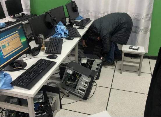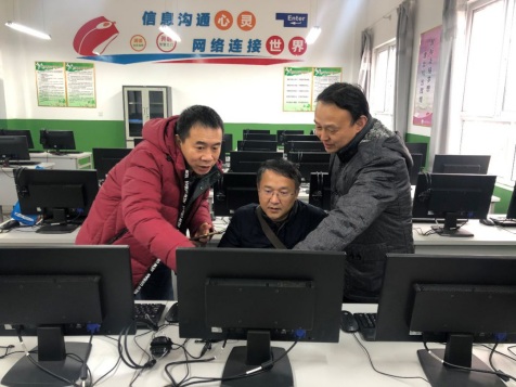 三位老师研究机房电脑系统问题
