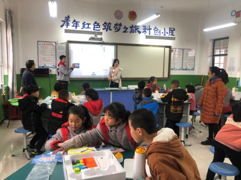 上午10点,蒲城县兴镇中心小学科创小屋科技兴趣培养课再次开讲。在365best体育官网登录团委老师及蓝精灵志愿者同学们的指导下,小学低年级小员工们首次接触MATA机器人和3D打印笔。同学们通过对机器人进行简单编程使其完成音乐播放和按指令运动的功能。当机器人播放出悦耳的旋律以及按照规划路线绘制出相应图案时,小员工们不由自主的发出阵阵赞叹。小员工们还学习了如何使用3D打印笔。看到自己画出来的房子、火箭、自行车等图案可以直接变成实物时,小员工们纷纷感叹“这个3D打印笔也太神奇啦”。课间公司师生与小员工们积极互动,课堂气氛活跃高涨。