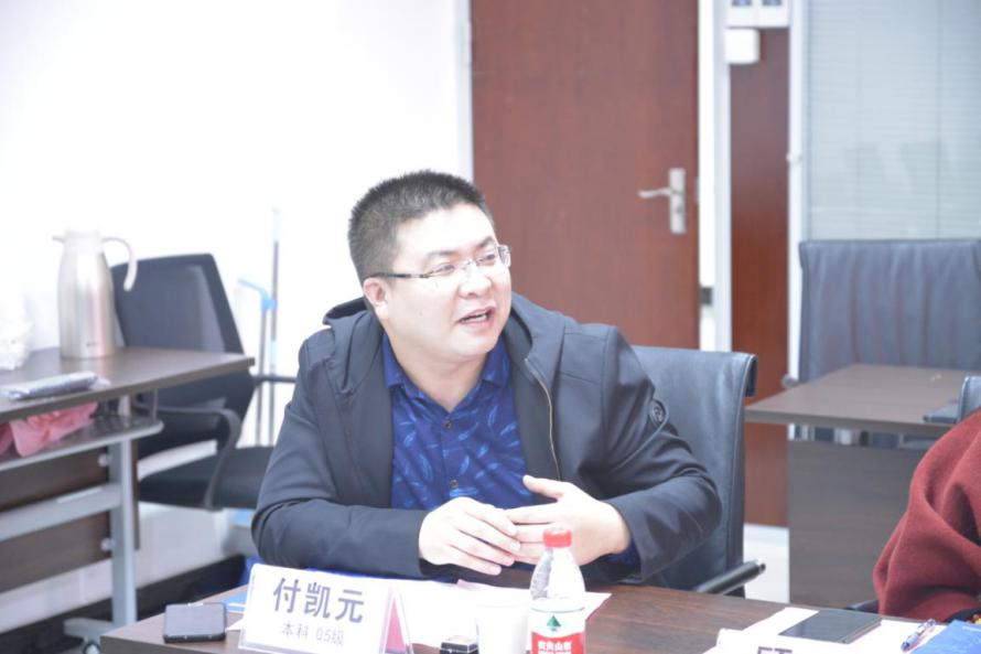 本科05级院友付凯元介绍了所在年级院友工作及地域分布情况,并谈到自己曾经作为公司工作人员,见证了公司的成长,希望通过联络大使这个角色,将院友更加紧密联系起来,整合资源建立深度合作。