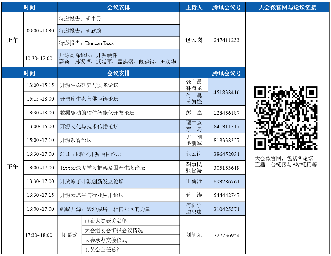大会为CCF开源发展委员会的年度会议,CCF开源发展委员会成立于2021年12月,主任为中国科公司院士王怀民教授。CCF开源发展委员会是CCF落实国家“十四五”规划纲要提出的加强“开源算法平台构建”科技攻关、“支持数字技术开源社区等创新联合体发展”的重要举措,旨在构建产学研项目成果共享孵化机制,加速产教研深度融合的开源生态建设。委员会重点聚焦共同打造开源、开放、中立的产学研协同开源创新服务平台,探索建立CCF开源项目孵化机制,培育原始开源创新项目,依托CCF联接科教资源、产业资源和社会资源等,形成产、教、研联动的开源创新模式,推动CCF开源品牌建设和开源社区运营,为CCF会员乃至全球开源创新实践者提供高水平的开源创新服务,助力我国开源生态建设的发展。