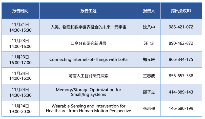 姓名 六位讲座专家 时间 2022年11月21日-11月24日