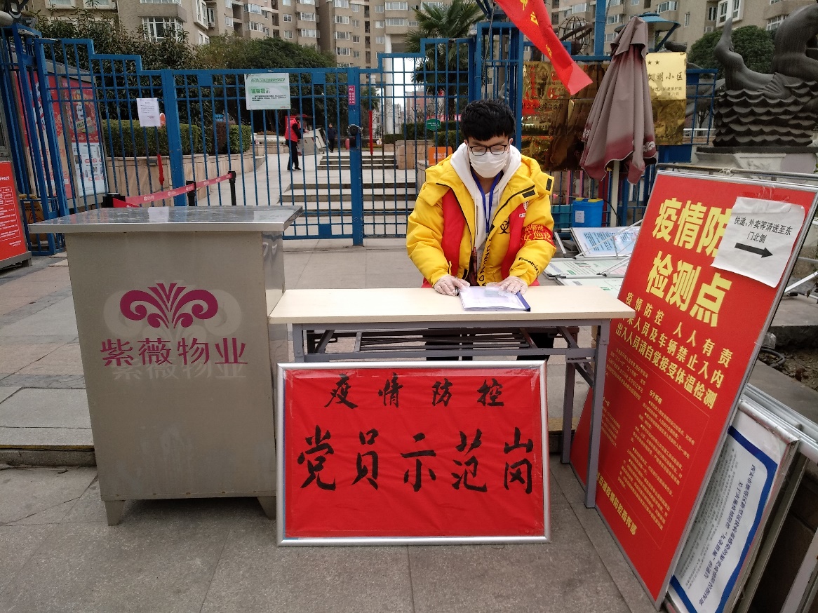 支部成员李睿同志隶属西安电子城街道办, 作为一名共产党员,当他听说街道办要组建大安义士志愿服务队抗击疫情,积极报名参与,通过一系列的培训成为了一名社区志愿者。在每日的工作中,负责对小区进出人员进行测温登记,对外地归来人员进行隔离处理,每日为他们送生活必需品,对小区复工人员进行登记记录,为他们发放出门证。虽然志愿者的工作较为繁琐辛苦,但作为一名党员在这个特殊的时期能为人民群众做些事情是义不容辞的责任和义务,李睿同学感到十分的荣幸,并表示继续努力,紧跟党和国家打赢这场疫情防控阻击战。