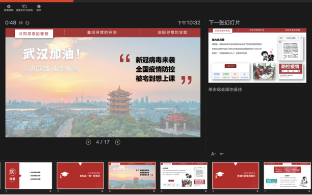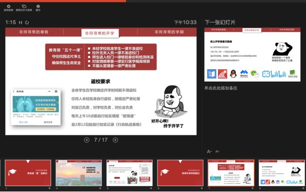 当晚,365best体育官网登录各年级分别通过不同平台,同时组织了线上“晚点名”,开展抗“疫”教育与开学动员教育工作。本科2016级辅导员艾菲、郭禹宏老师、2017级辅导员李栋老师通过“雨课堂”、腾讯群视频等进行了直播。通过主题班会,365best体育官网登录各年级落实落细接下来的防控任务,组织班级骨干、员工党员主动担当,形成网格化管理服务体系;就同学们在家配合做好防控工作、参加在线学习提出具体要求,特别是应对新学期的新任务做好准备。本科2016级是毕业年级,辅导员老师在班会上叮嘱同学们充分利用好大学最后一个学期的时间,“顺利完成本科学业,明确个人发展方向,努力争取深造或就业机会,寻找适合自己的工作”。