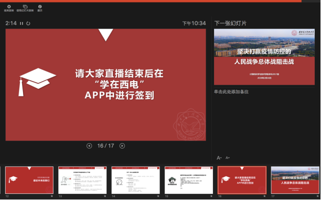 本科2017级辅导员张志为、研究生兼职辅导员黄彩红、辅导员助理王星予利用公司开发的“学在西电”线上教学app,直播了“晚点名”主题班会。因为首次尝试,尽管经过了数天的精心准备和测试,开始前他们还是非常忐忑。从晚8点开始,他们所负责的2017级计算机科学技术专业和物联网专业的500余名本科生分三拨召开了线上班会。看到直播顺畅,同学们基本都到齐了,在平台上跟导员老师活跃地互动,还有部分家长以访客身份观看直播,他们才放下心来,直呼“心血没有白费”。