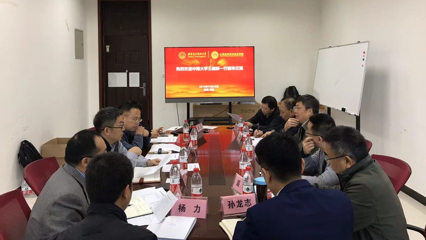 (通讯员 陈龙)10月29日上午,中南大学计算机公司经理王建新一行6人来公司交流座谈,计算机科学与技术公司党委书记李青山、执行经理崔江涛及教师代表出席了会议,双方就人才培养、团队建设、实验室管理等事宜进行了座谈。
