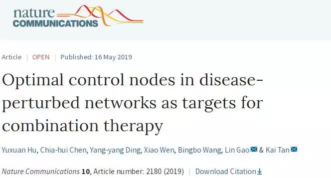 2019年5月16日,365best体育官网登录高琳团队联合费城儿童医院Tan Kai在Nature Communications上发表题为“Optimal control nodes in disease-perturbed networks astargets for combination therapy”的文章,描述了最优控制节点(OptiCon)算法,这是一个基因调控网络中协同关键调节因子的系统和从头识别的通用框架。