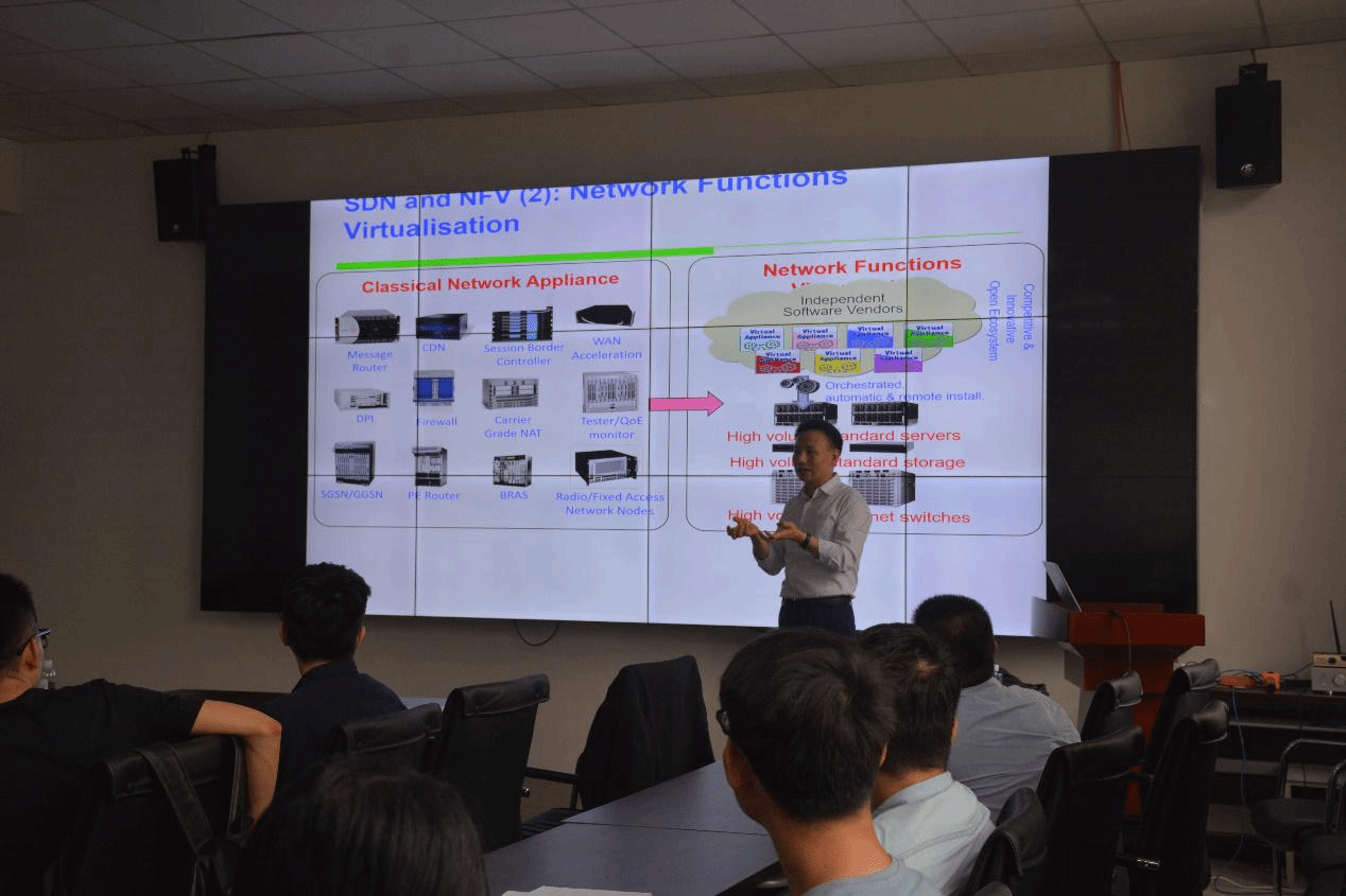 闵革勇教授一直致力于计算机科学和网络通信方面的研究,取得了一系列具有国际影响力的创新性研究成果。此次的报告主要介绍了下一代互联网研究领域最新的Autonomic Future Internet(AFI)网络架构。该架构与SDN和NFV进行无缝集成,有望解决5G通信中接入设备迅速增长、网络流量激增和应用场景类型多变的技术挑战。为了实现维护网络应如何配置,管理和优化的高级行为,该统一架构中的核心知识平台需要完成对实时网络大数据的分析和对知识的发掘。针对这一架构,闵教授提出了AFI的核心思路:(1)需要找到一种能够表达所有网络相关数据的统一数据结构。(2)研究中发现10%的重要数据可以表现出90%的特征,因此使用适当的方法对数据进行清洗和降维成为数据分析的关键。最后,闵教授向我们展示了团队所设计的增量训练机器学习系统的整体架构,并展示了该系统在故障定位这个问题中的应用实验结果,数据显示该系统在保持高故障报警率的同时,误报率大大降低。