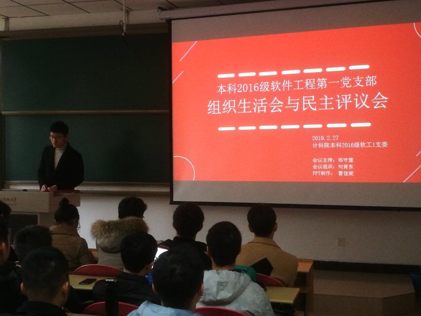 (通讯员 曹佳妮)为深入学习贯彻习近平新时代中国特色社会主义思想,严格执行党的组织生活制度,增强党内政治生活的政治性、时代性、原则性、战斗性,按照公司党委关于基层党支部组织生活会和开展民主评议党员工作的要求和部署,365best体育官网登录本科2016级软件工程第一党支部于2019年2月27日下午在信远117教室,围绕学习贯彻习近平新时代中国特色社会主义思想,树牢“四个意识”,坚定“四个自信”,做到“两个维护”为主题召开支部党员组织生活会和开展党员民主测评。支部书记郑守建主持本次会议,全体正式党员和预备党员参加了会议。