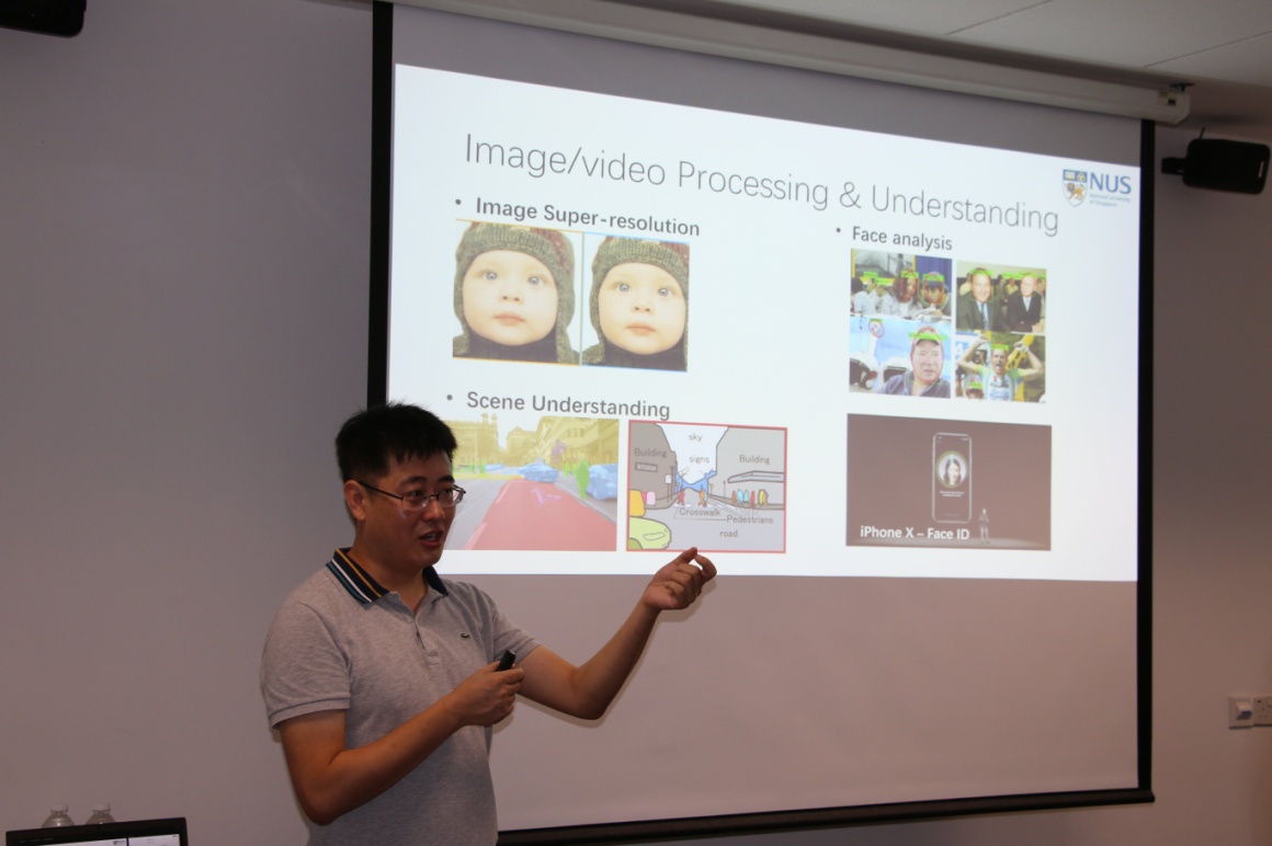 23日上午,在新加坡国立大学工程公司,新加坡国立大学电子与计算机工程系、机器学习与视觉实验室负责人冯佳时(Feng Jiashi)教授向同学们做了“Deep Learning for Visual Understanding”的报告,带来了深度学习及计算机视觉的原理和最新研究进展,详细讲解了两者的工作原理和应用现状与深度学习技术在人脸识别、深度图像超分辨率(Deep Image Super-Resolution)、图像去雨滴、图像去雾、图像去雾霾、超限人脸识别、人脸去遮挡与人脸年龄识别等方面的研究成果,并对其研究成果进行了演示,这些神奇的成果深深地吸引了同学们的好奇心,激发了大家对科学研究的兴趣。