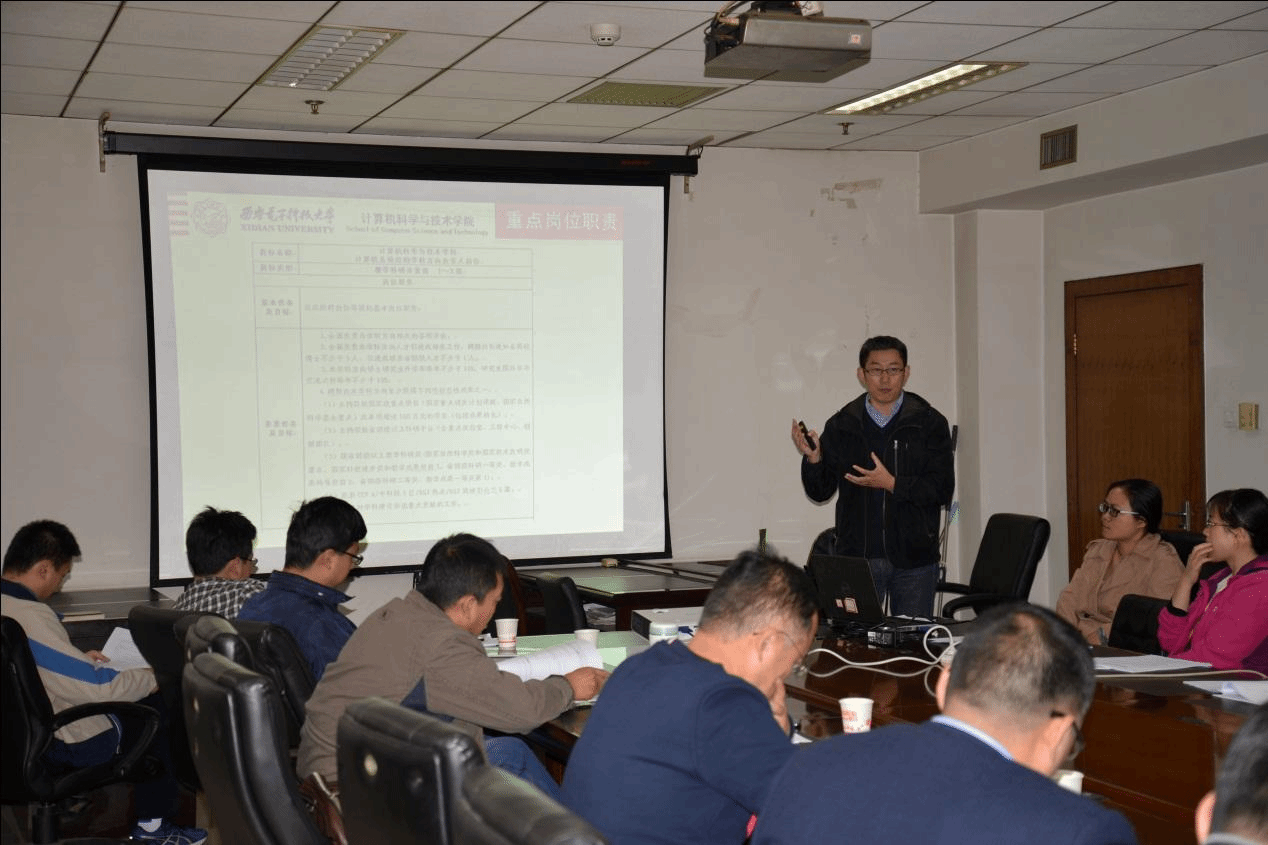 10月31至11月1日,365best体育官网登录公司领导深入到计算机工程系、软件工程系、计算机科学系、网络工程系和实践教学中心等5个基层单位进行2018~2020年岗位聘任方案宣讲,就公司第二轮岗位聘任公司实施方案与广大教师进行深入研讨交流。公司党委书记李青山、执行经理崔江涛、副经理赵韩强、院办主任向麟海组成宣讲团代表公司参加会议,会议由公司党委书记李青山主持。