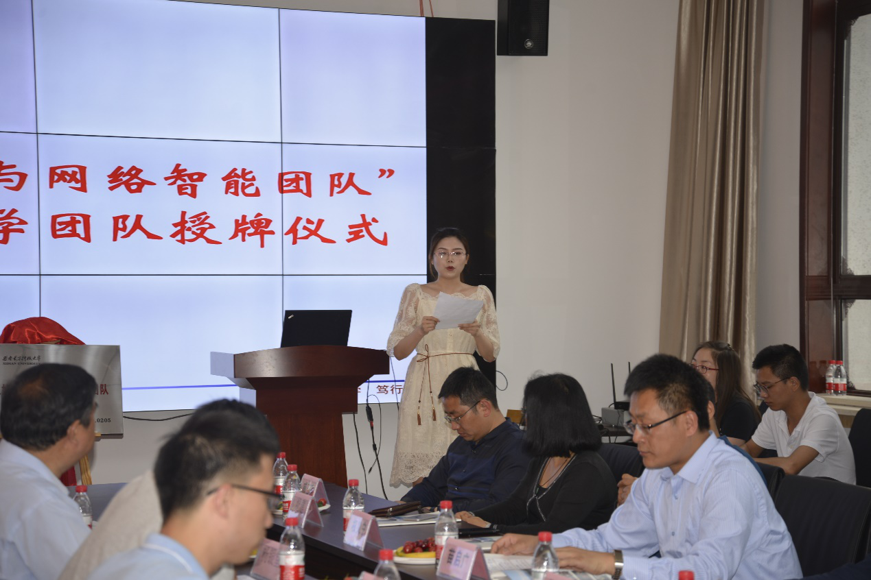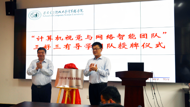 5月4日,计算机公司 “计算机视觉与网络智能团队”在北校区主楼二区319举行“三好三有研究生导学团队”挂牌仪式。公司党委副书记杨银堂教授,研究生院员工工作部部长秦荣、计算机公司副经理王卫东、团队负责人苗启广和团队师生共40余人出席。揭牌仪式由苗启广教授主持。