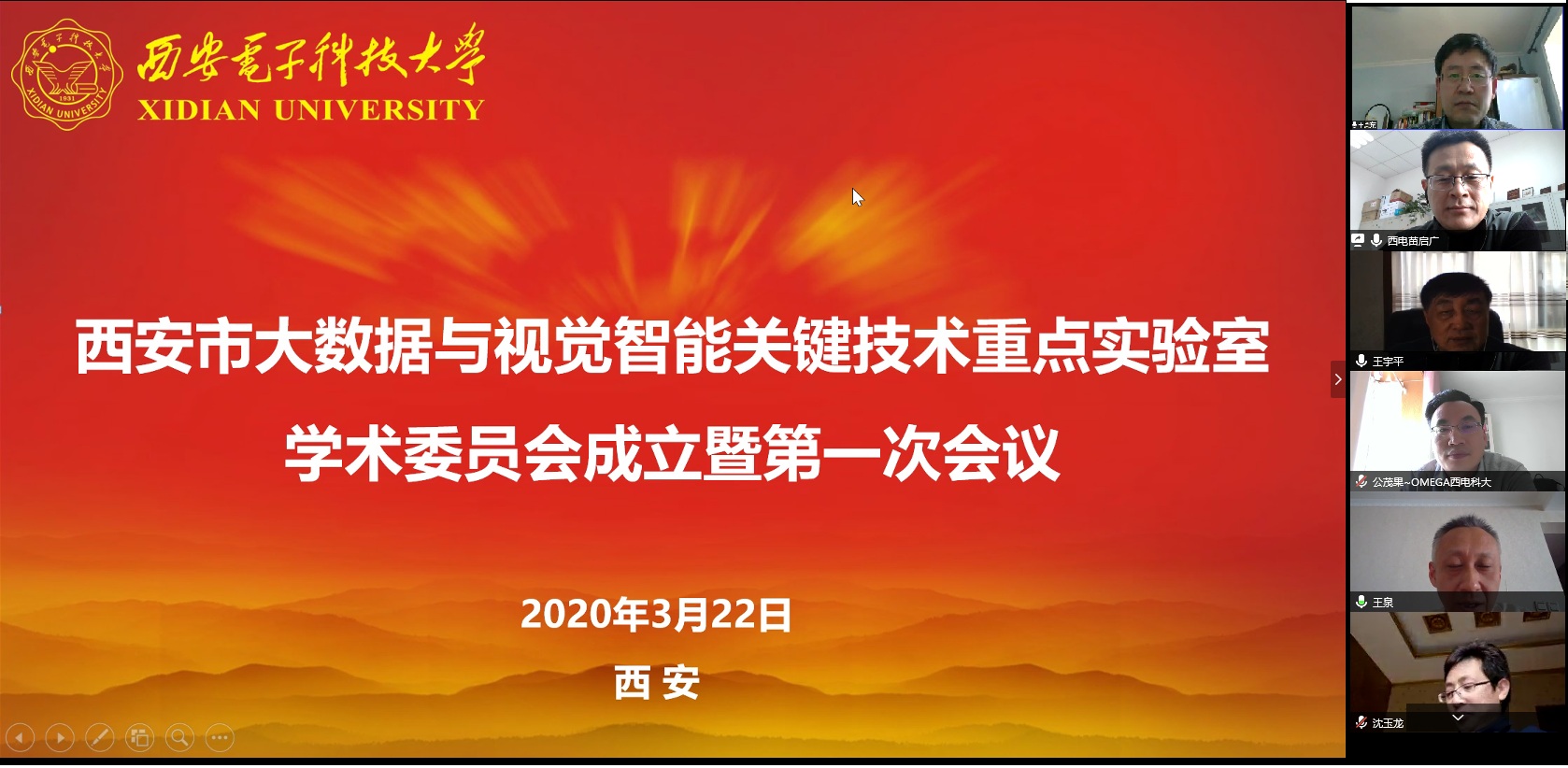 (通讯员 孙鹏岗)3月22日下午,在疫情仍未消除的特殊时期,西安市大数据与视觉智能关键技术重点实验室(以下简称“实验室”)学术委员会成立暨第一次学术委员会会议以“云会议”的方式顺利召开。