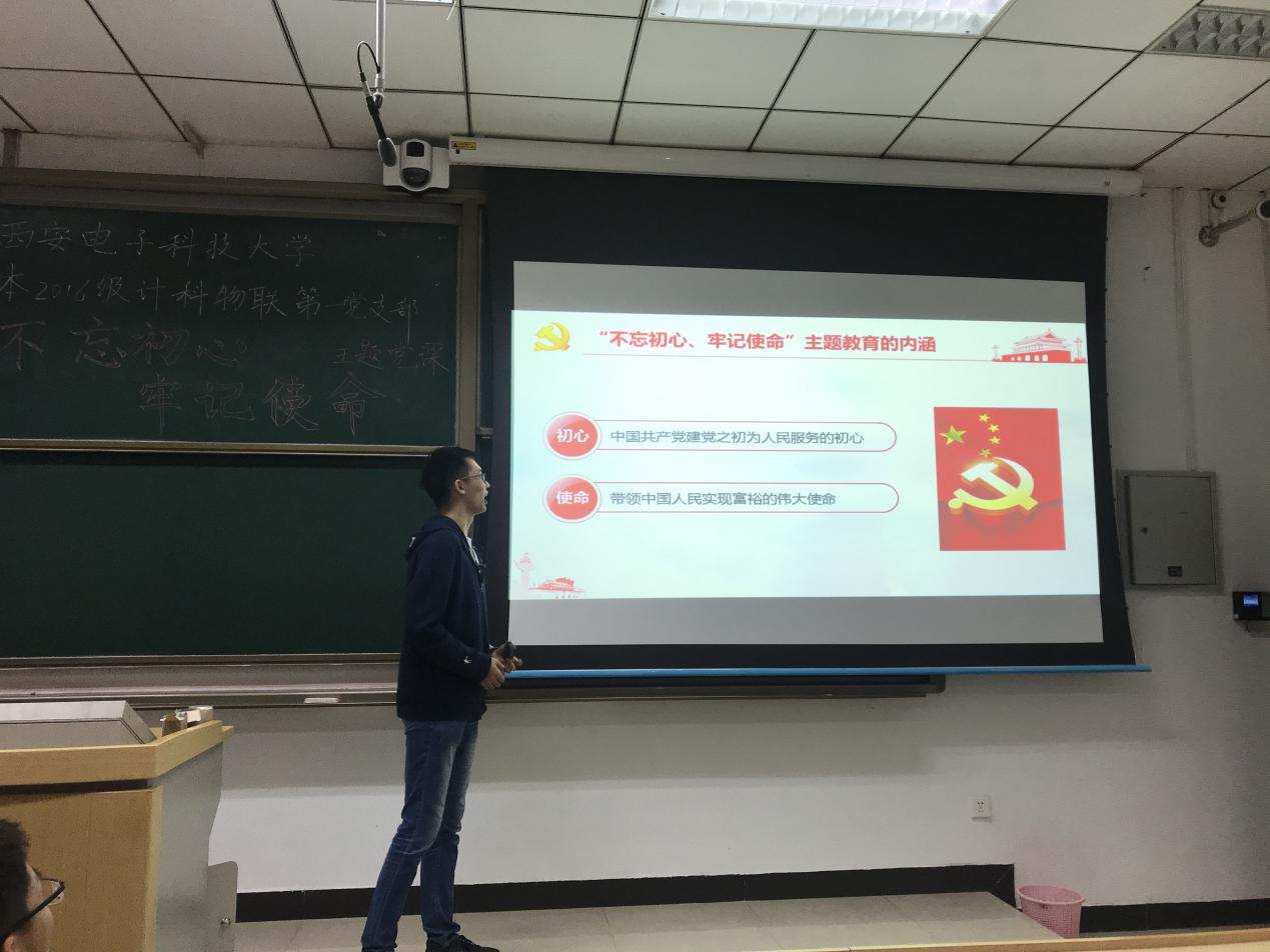 (通讯员 翟恋 徐聪)2019年10月10日,365best体育官网登录本科2016级计科物联第一党支部在南校区信远1区118教室开展了“不忘初心、牢记使命”主题党课。365best体育官网登录本科2016级计科物联第一党支部副书记张俊华同志作为本次党课的主讲人,将主题党课分为多个模块,与同学们一同探讨了老员工党员应该如何践行“不忘初心、牢记使命”。