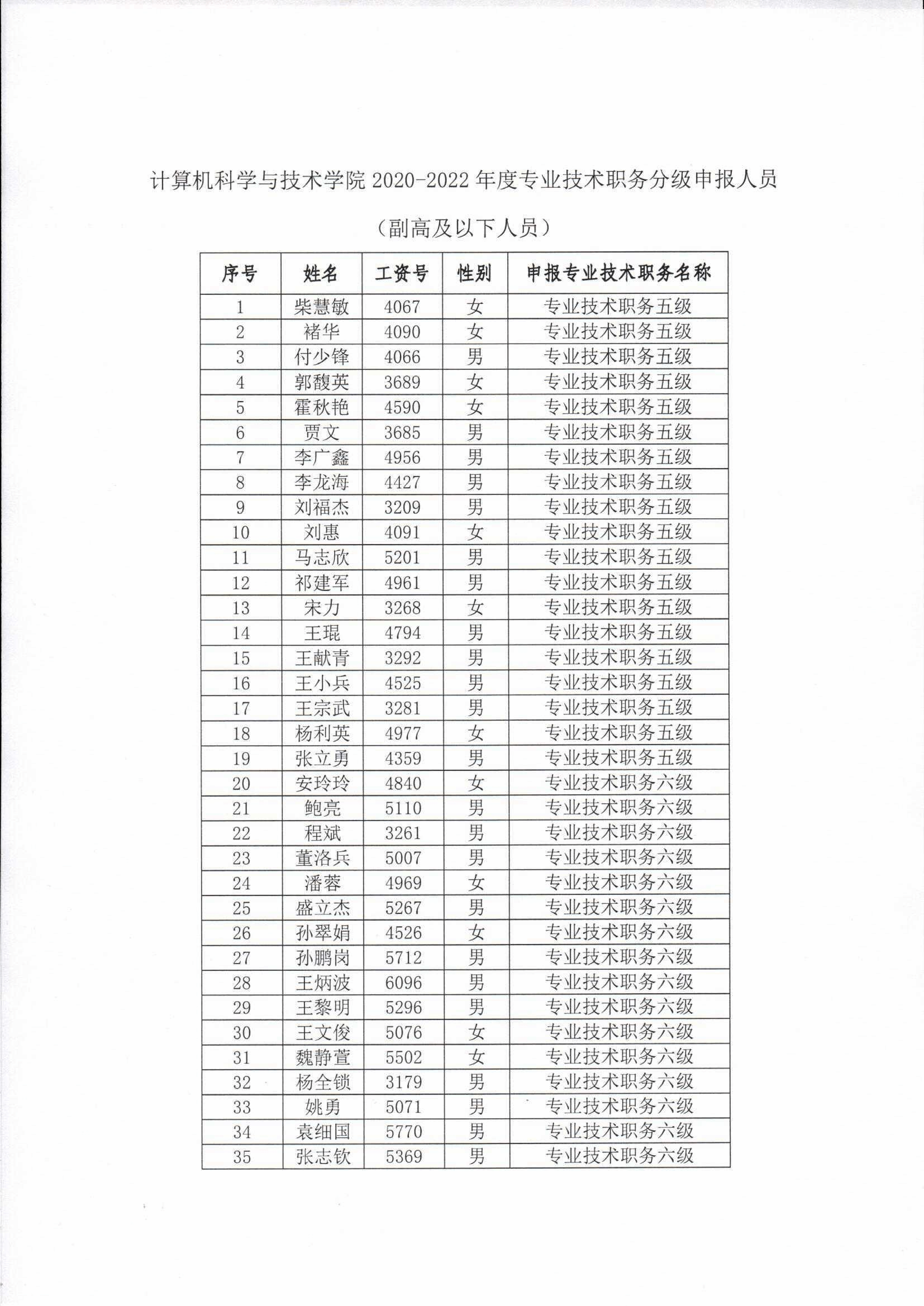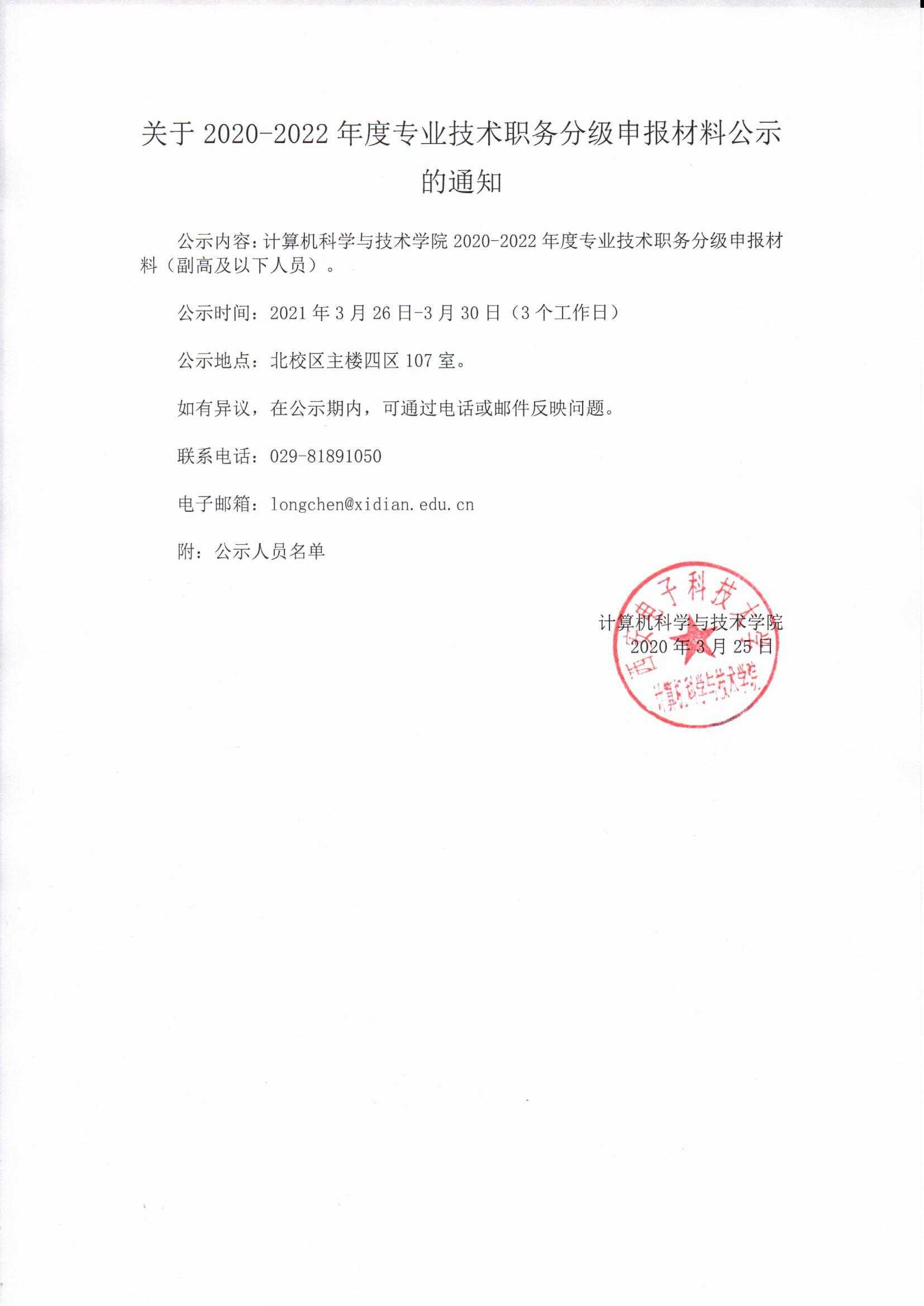 关于2020-2022年度专业技术职务分级申报材料公示的通知